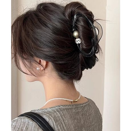 存在感のあるビッグフェイクパールが目を引く、トレンド感たっぷりのバンスクリップ。