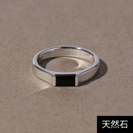 【SV】バケットカットオニキスミニマルリング/天然石/ニッケルフリー/金属アレルギー対応 シルバー
