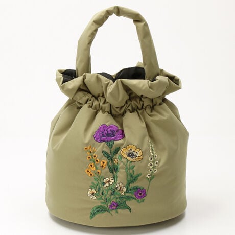 「glanta」ビッグ&ポピーブーケ刺繍巾着&ショルダーバッグ