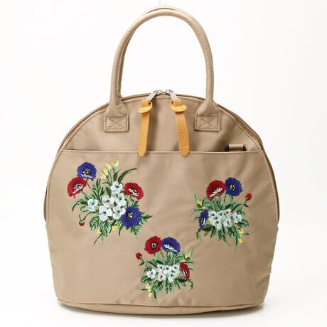 「glanta」フラワーバッチ刺繍ラウンドトート&ショルダーバッグ