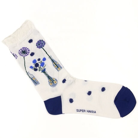 画家・イラストレーター マツモトヨーコさんとのコラボシリーズ。マツモトさんの花瓶に入ったお花の作品を、足首にぐるりとあしらったソックス。作品のカラフルなイメージを意識して、足先やかかと部分、ドットを配色にしました。『Popping flowers』マツモトヨーコ Yoko Matsumoto画家・イラストレーター川口俊和著「コーヒーが冷めないうちに」シリーズの装画などのイラスト多数。東京、大阪、京都他で毎年個展開催しています。主に穏やかで温かい空気感のある室内の情景を描いています。