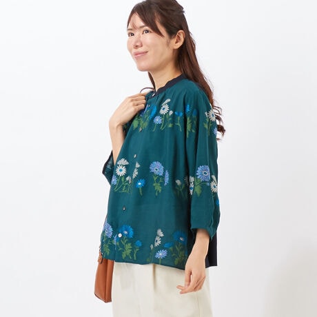レインボーマーガレットカットジャカード コクーンスリーブブラウス
