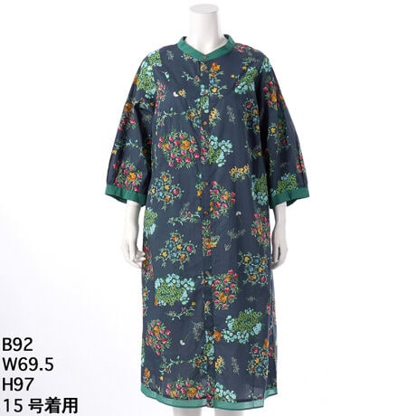 [大きいサイズ]コットンローンルシオール加工ブーケとリスプリントワンピース(前開き)
