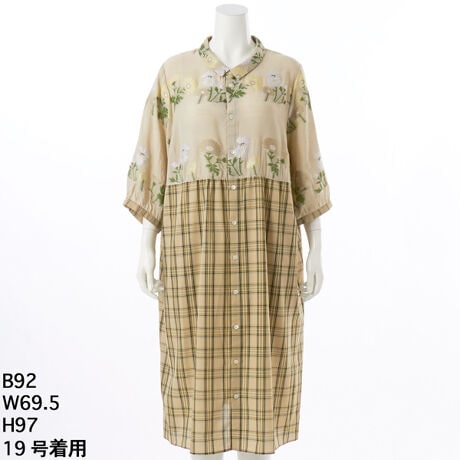 [大きいサイズ]レインボーマーガレットカットジャカード+ローンチェックワンピース(前開き)