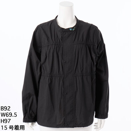 [大きいサイズ]コットンナイロンワッシャー タイニー・フローラワンポイント刺繍ギャザーブルゾン