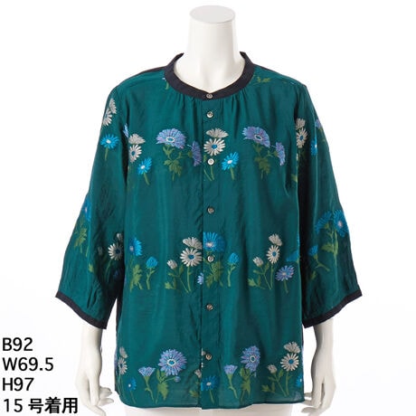 [大きいサイズ][レインボーマーガレットカットジャカード コクーンスリーブブラウス