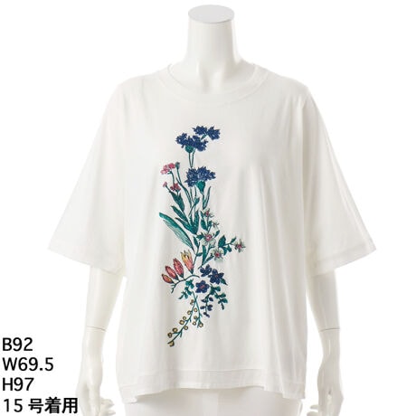[大きいサイズ]フローリーハグ刺繍Tシャツ