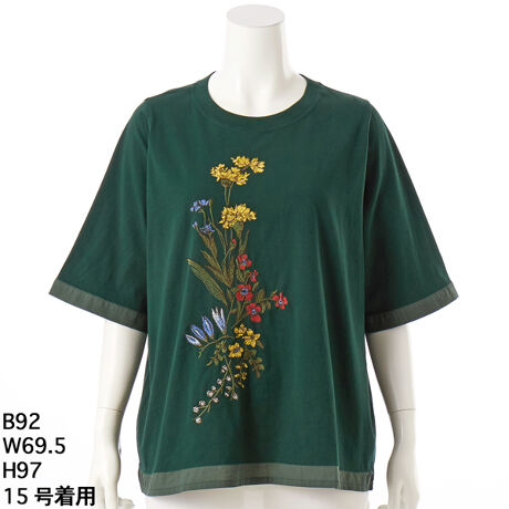 [大きいサイズ]フローリーハグ刺繍Tシャツ