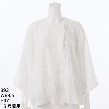 マルイウェブチャネル   /   スーパーハッカ   /   トップス   /   Tシャツ・カットソー   /   [大きいサイズ]セルロース麻カルゼ+コットンボイル+ドットチュール フリルカットソー