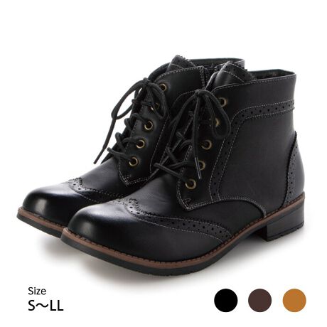 【メダリオンデザインがクラシカルなテイストなレースアップショートブーツ】