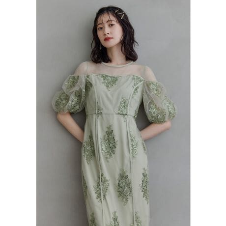 niana ニアナ 繊細なチュールに立体刺繍をのせてスパンコールを飾った華やかなオケージョンドレス。