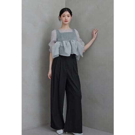 透けすぎないオーガンジーのペプラムトップスは、エアリーなボリューム感が魅力。