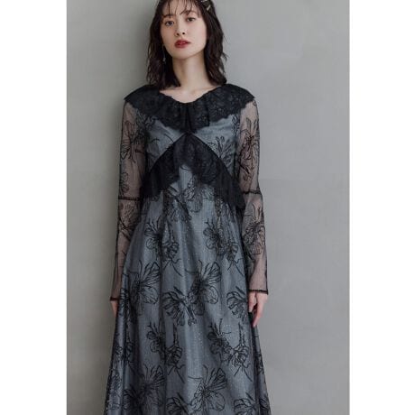 niana ニアナ ゴールドのラメ糸が煌めく大胆なフラワーパターンのワンピース。