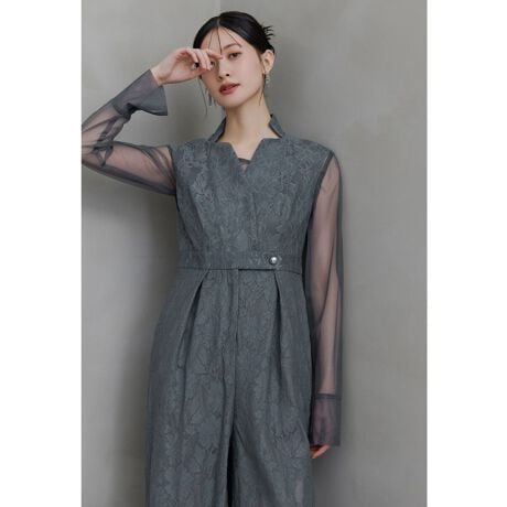 シャープな印象に仕上げたオールインワンとシアートップスの2ピースセット。