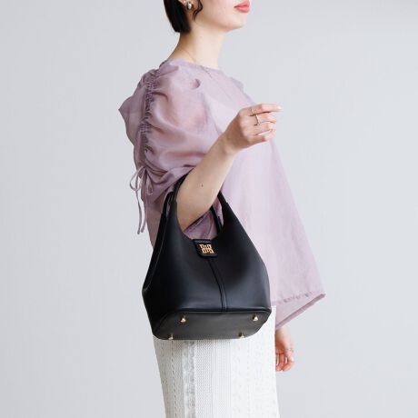 しなやかな牛革を贅沢に使用した、存在感と実用性を兼ね備えたハンドバッグ。無駄を削ぎ落としたミニマルなフォルムに、HIMIKOロゴメタルパーツがアクセントに。アイボリー、グリーンは肌なじみが良く、きれいめな通勤スタイルはもちろん、休日のカジュアルな装いにもマッチ。マグネットで開け閉めも簡単で、必需品をすっきりとまとめられるのも魅力です。内側にはオープンポケットとファスナーポケット付き。同素材のショルダーストラップ付きで、肩掛けや斜め掛けも可能。シーンや気分に合わせて持ち方を変えられ、日常使いからお出かけまで幅広く活躍するバッグです。