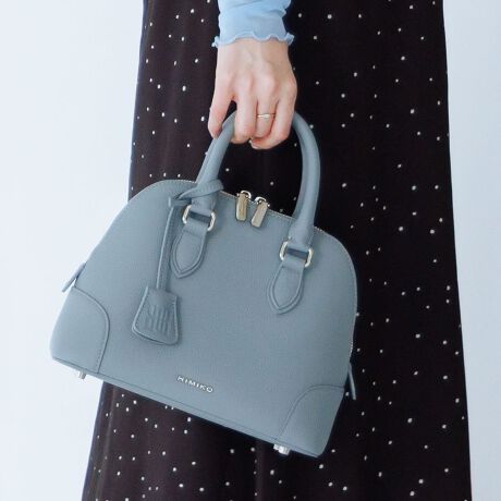 立体感のある美しいフォルムが、きちんと感を演出するミニボストンバッグ。上質なシボ感のある牛革を使用し、程よい柔らかさと落ち着いた表情を兼ね備えています。HIMIKOロゴメタルパーツがさりげないアクセントに。ファスナー付きで中身が見えにくく、安心感のある使い心地もポイント。内側にはオープンポケット付き。同素材のショルダーストラップ付きで、手持ち・肩掛けが可能。トレンドのブルーは、ベーシックなコーディネートにさりげない彩りを添えます。コンパクトながら必要な荷物がしっかり収まり、幅広いシーンで活躍します。