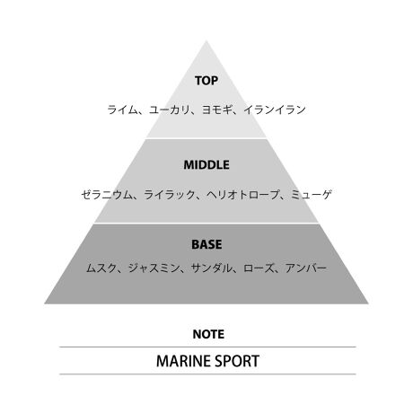 ミューゲやヘリオトロープ、そしてジャスミンなどのホワイトフローラとフレッシュライムの組み合わせに、官能的なムスクを加えた、透明感のあるMARINE調の香り