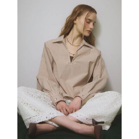 程よくゆとりのあるシルエットと襟元の開いたデザインがリラックス感を演出し、抜けのある大人スタイルが完成します。