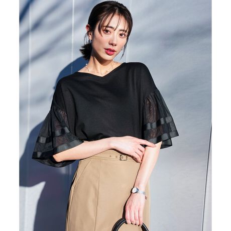 #ANYSIS #anySiS #エニシス #エニィシス #エニスィス #レディース #トップス #チュール #Tシャツ #フリル #グログランテープ #ポンチ素材 #微光沢 #体型カバー #上品カジュアル #通勤 #オフィス #オフィスカジュアル #オフィスカジュアル #お仕事着 #お仕事 #きれいめ #フェミニン #洗える #ウォッシャブル