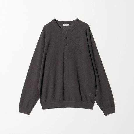 テクスチャード 3ボタン ヘンリーネック ニット ウォッシャブル