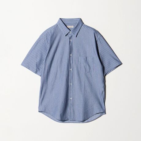 クイック ストレッチ ストライプ シャンブレー ボタンダウン 半袖シャツ SLIM型 吸水速乾機能付