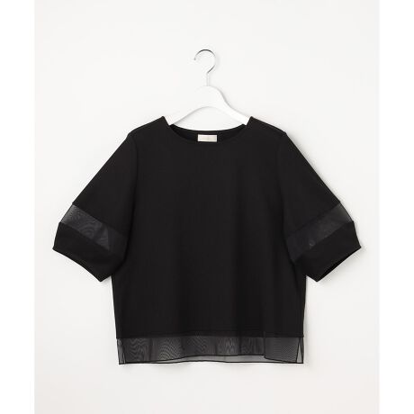・裾と袖にふんわり空気をまとわせるチュールの透け感が、女性らしく上品に着映える・腕まわりを自然に華奢見せしてくれるランタンスリーブ・オフィスでも休日でもスタイリングを選ばず、一枚で“きちんと感”と“華やぎ”を両立