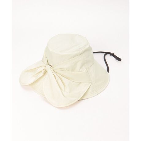 首元までしっかり覆うツバ広デザインで、紫外線対策に心強いリボンハット。