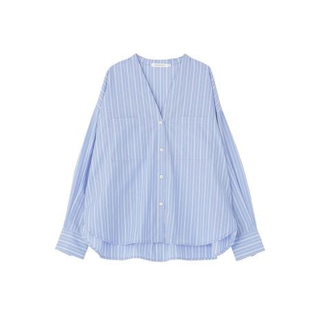 お手入れ簡単、華奢見えストライプ縦のストライプ柄がすっきりとした印象を与え、自然と華奢見えを叶えるVネックシャツです。顔まわりをきれいに見せるVネックデザインが抜け感を演出し、大人カジュアルな着こなしに仕上げます。ゆとりのあるシルエットで体のラインを拾いにくく、リラックス感のある着心地です。イージーケア素材を使用しているため、シワになりにくくお手入れも簡単です。忙しい毎日でもきちんと感をキープできます。パンツにもスカートにも合わせやすく、通勤から休日のお出かけまで幅広く活躍する万能シャツです。