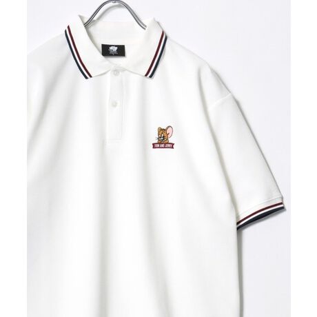 Disney/Tom and Jerry/ディズニーミッキー/トムとジェリー カノコ リブライン ワンポイント刺繍 半袖ポロシャツ レディース メンズ