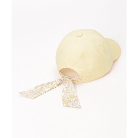 [型番:13270661]軽やかなシャンブレー素材を使用したキャップ。後ろには花柄のリボンをあしらい、後ろ姿まで抜かりのないデザインに仕上げました。カジュアルから、お出かけシーンまで活躍します。