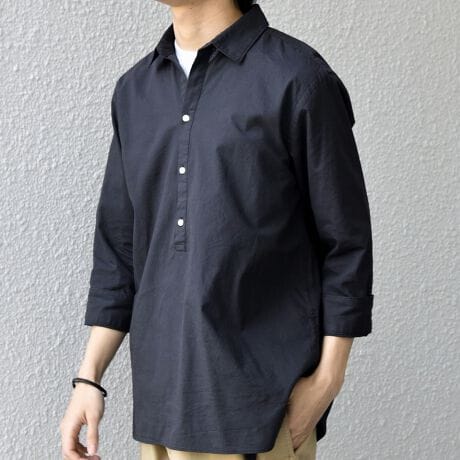 汎用性抜群!コットンリネン素材を使用した7分袖のプルオーバーシャツ