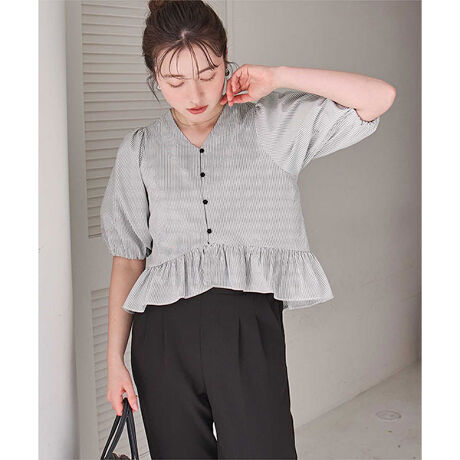 ・立体感のあるシルエットが魅力の、ペプラムデザインブラウス