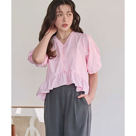 ・立体感のあるシルエットが魅力の、ペプラムデザインブラウス