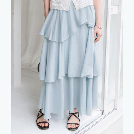 ・歩くたびに揺れるランダムヘムが、軽やかで華やかな印象を演出