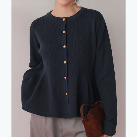 ・ふんわり広がるペプラムシルエットが魅力の、女性らしさ漂うニットカーディガン