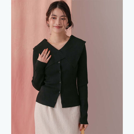 ・存在感のあるビッグカラーが顔まわりを華やかに見せる、主役級リブニットトップス