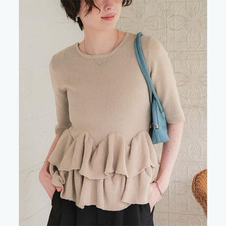 ・ランダムフリルヘムが目を惹く半袖ニットカーディガン