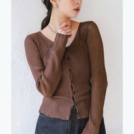 ・ワンピースやキャミソールの上にさらっと羽織るのはもちろん、ボタンを留めて一枚着としてもおすすめ