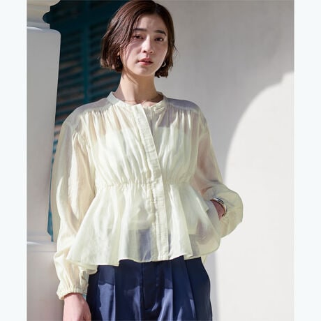 軽やかなシアー素材が涼しげな印象のブルゾン。ウエストからふんわり広がるペプラムシルエットが女性らしさを引き立て、羽織るだけで着映えする一枚です。薄手でさらっと羽織れるため、夏場の日よけや冷房対策にもぴったり。カジュアルにもきれいめにも合わせやすく、シーズンを通して活躍するアイテムです。[型番:BHXN2362]