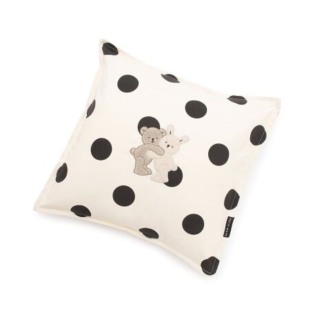日常に馴染みやすいシンプルなワンポイントデザインのスクエアクッションです。パイル素材の可愛らしいモチーフや、ロゴタグがあしらわれています。フチの配色でさりげないアクセントをプラス。カバーは簡単に外せるのでお手入れもラクラクです。