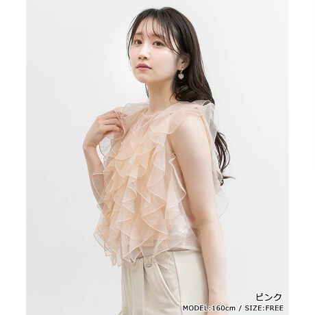 繊細なきらめきと軽やかさがロマンティックなフリルブラウス。