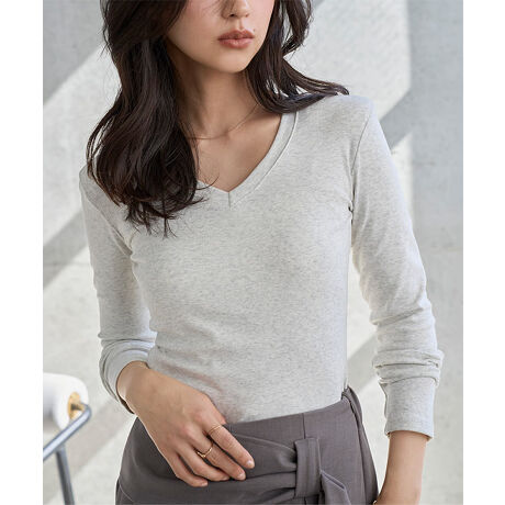コーデやお好みでお選びいただけるクルーネックとVネックの2ネックデザインのご用意です◎
