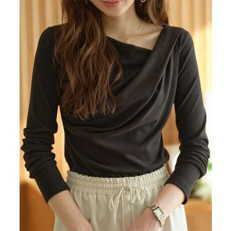 洗練された大人の表情ひきたてるドレープデザイントップス。