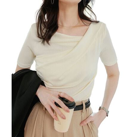 洗練された大人の表情ひきたてるドレープデザイントップス。