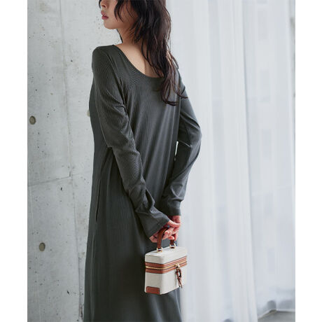 前後2wayボートネックリブワンピース [E3569]