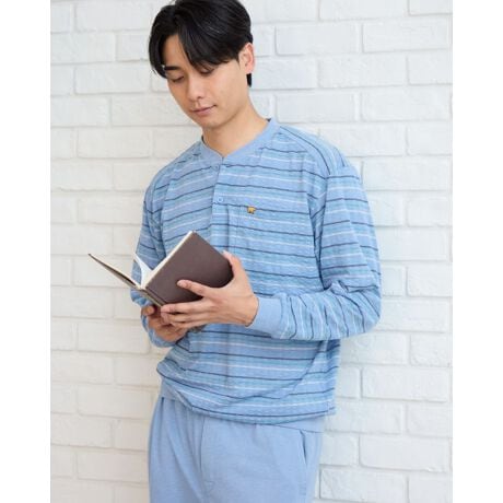 清涼感あふれる、夏に最適な長袖・長ズボンタイプのパジャマです。