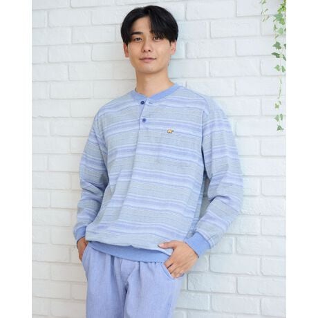 さらりとした肌ざわりが魅力の、長袖ヘンリーネックタイプのパジャマです。