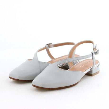 甲に掛かる斜めベルトが女性らしいシルエットを描き、足元をすっきりと見せてくれるバックストラップシューズ。片手でさっと履ける手軽さも、嬉しいポイントです。