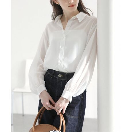 軽やかな素材感とバックシルエットの程よいギャザーで女性らしい柔らかさを演出。
