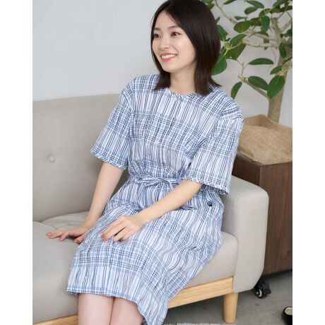 昨年人気があった、ワンピースのチェック柄を作りました。凹凸のある生地が肌離れよく、暑い季節でもさらりと快適な着心地を叶えます。ゆったりとしたサイズ感が身体をふんわり包み込み、締め付け感のないストレスフリーな着心地を実現。ちょっとした外出にもそのまま使える、抜け感のある大人カジュアルな一着です。